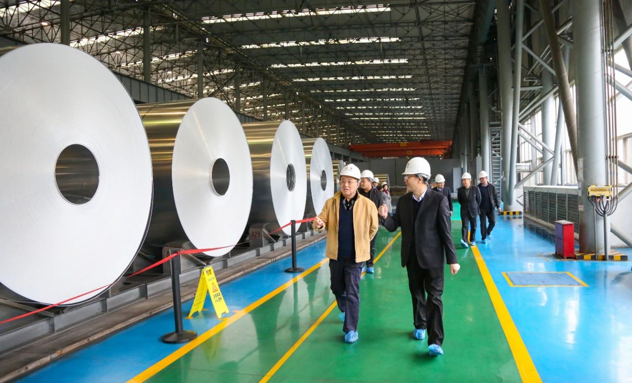 王爭亞會長一行首先在豫聯工業園區觀景臺聽取了公司發展和園區建設歷程、產業布局等情況介紹,隨后深入中孚高精鋁材公司熔鑄、熱軋、冷軋生產區域進行實地參觀,對公司廠容廠貌、裝備及產品、鋁精深加工市場開發、員工精神面貌等給予高度評價。
