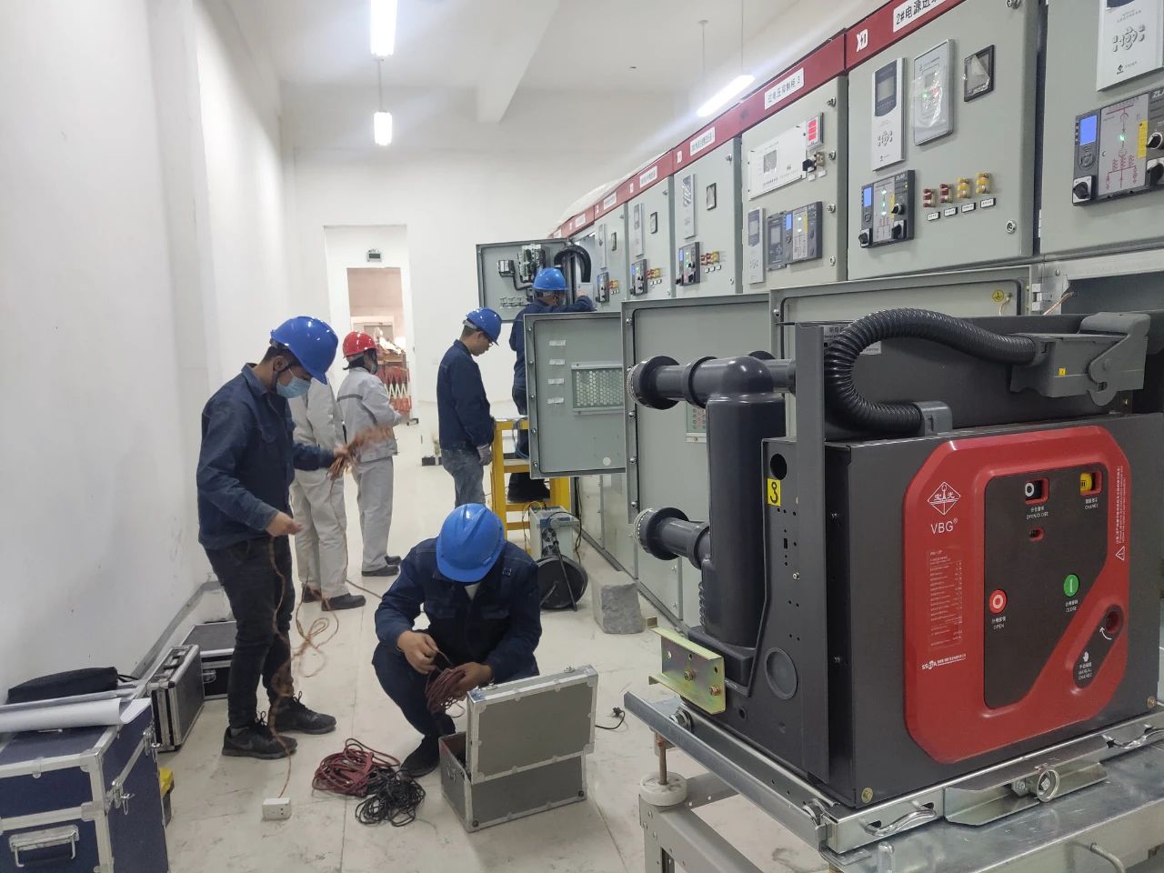 11月 19日下午, 集團公司生產管理部、中孚電力公司、中孚高精鋁材公司以及中色科技、監理單位共同對10千伏10PS配電站及輔屬設施進行全面系統的檢查驗收,認真審核送電方案。次日17時許,運行人員按照送電運行小組下達的指令,精心操作,確保每個步驟都準確到位、萬無一失,實現了10PS配電站一次安全投運。