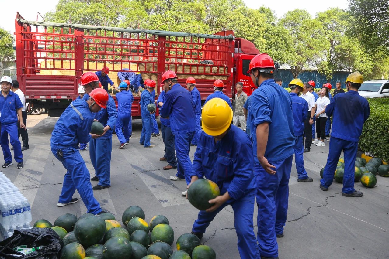 7月14日上午,受集團公司賀懷欽董事長委托,薄光利、周鐵柱、王力、楊新旭等集團公司領導及相關人員深入一線,給各單位送去了西瓜、礦泉水、防暑藥品等物資,并向高溫期間堅守崗位的廣大員工表示衷心的感謝和誠摯的問候。