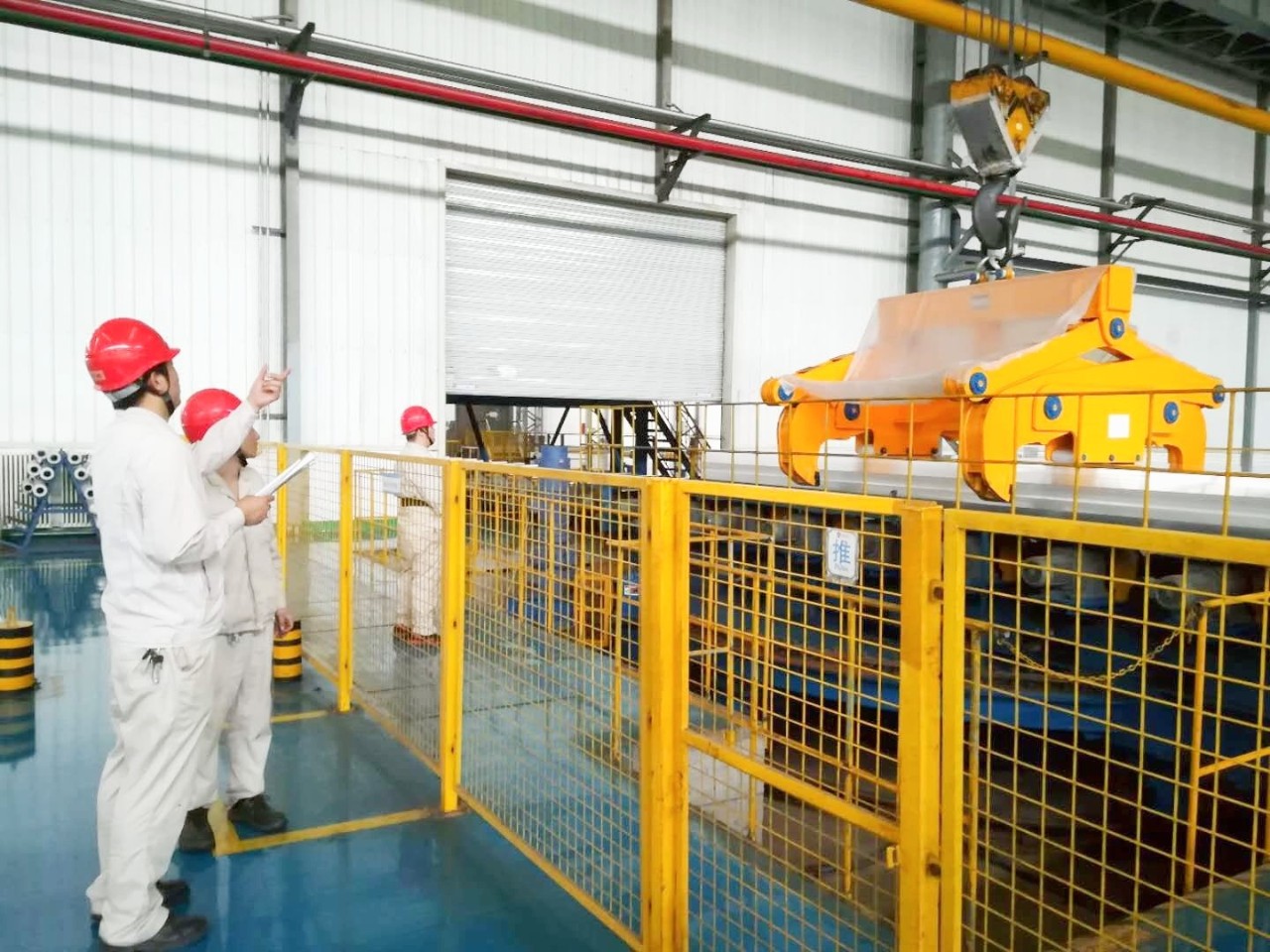圖為熔鑄廠鑄造工程師吳超峰檢查員工對(duì)培訓(xùn)內(nèi)容“管式箱體及流槽維護(hù)要點(diǎn)”的掌握情況,并交代注意事項(xiàng)和操作細(xì)節(jié)。