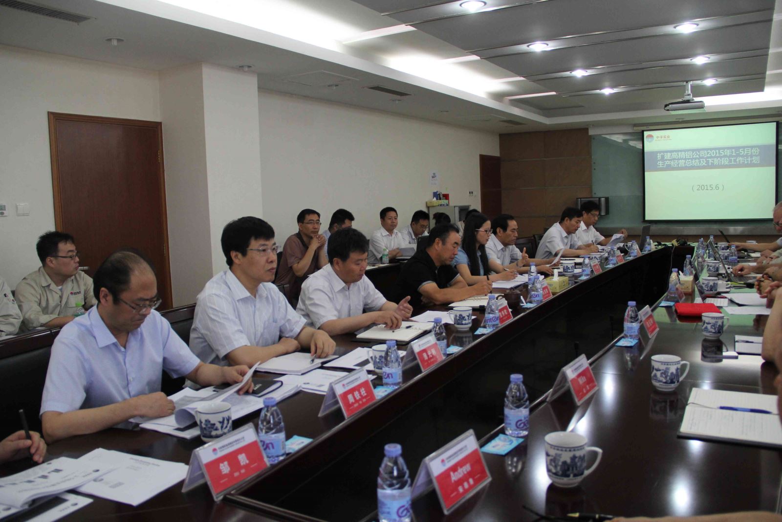 6月11日上午,集團公司在機關9樓會議室召開了擴建高精鋁外方專家團年中總結會議。集團公司部分領導班子成員、外方專家團、擴建高精鋁領導班子、區域經理及相關技術人員共40余人參加了會議。會議由集團公司總經理王元明主持。集團公司張洪恩董事長表示,我們要堅定信心,團結一致,繼續努力,迎接高精鋁項目建成投產的全面勝利。