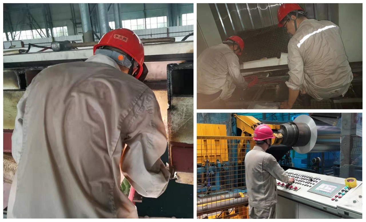 戰(zhàn)高溫斗酷暑,高溫天氣擋不住高精鋁一線員工的工作熱情,大家始終干勁十足。熱軋現場,為保障設備可靠運轉,檢修班組加班加點進行設備改造,消除設備缺陷。拉矯現場,受高溫蒸汽的影響,散熱機器附近溫度較高,呆在現場不到兩分鐘,衣服就像水里撈出來一樣,但員工不畏暑熱,在生產現場認真操作設備,一絲不茍地檢查下機料卷。軋機現場,為了不漏檢任何一個質量問題,年輕的員工目不轉睛地盯著高速軋制的卷材,臉上的汗珠滴答不停,但他們顧不得休息,始終堅守在軋機旁邊,一個卷材完成軋制,另一個卷材又進行同樣的操作,現場緊張又忙碌。