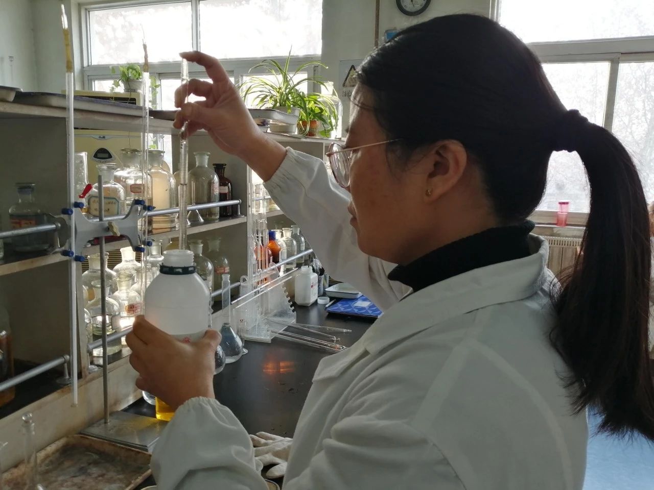 中孚技術中心:化學分析崗員工進行鋁鈦硼絲中硼元素分析測定