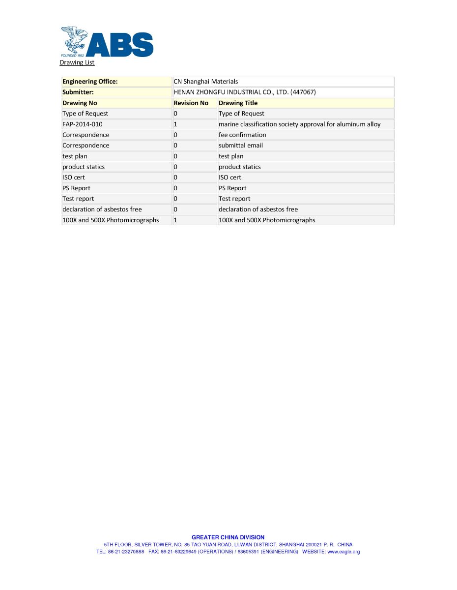 中孚高精鋁產品通過美國船級社(ABS)認證