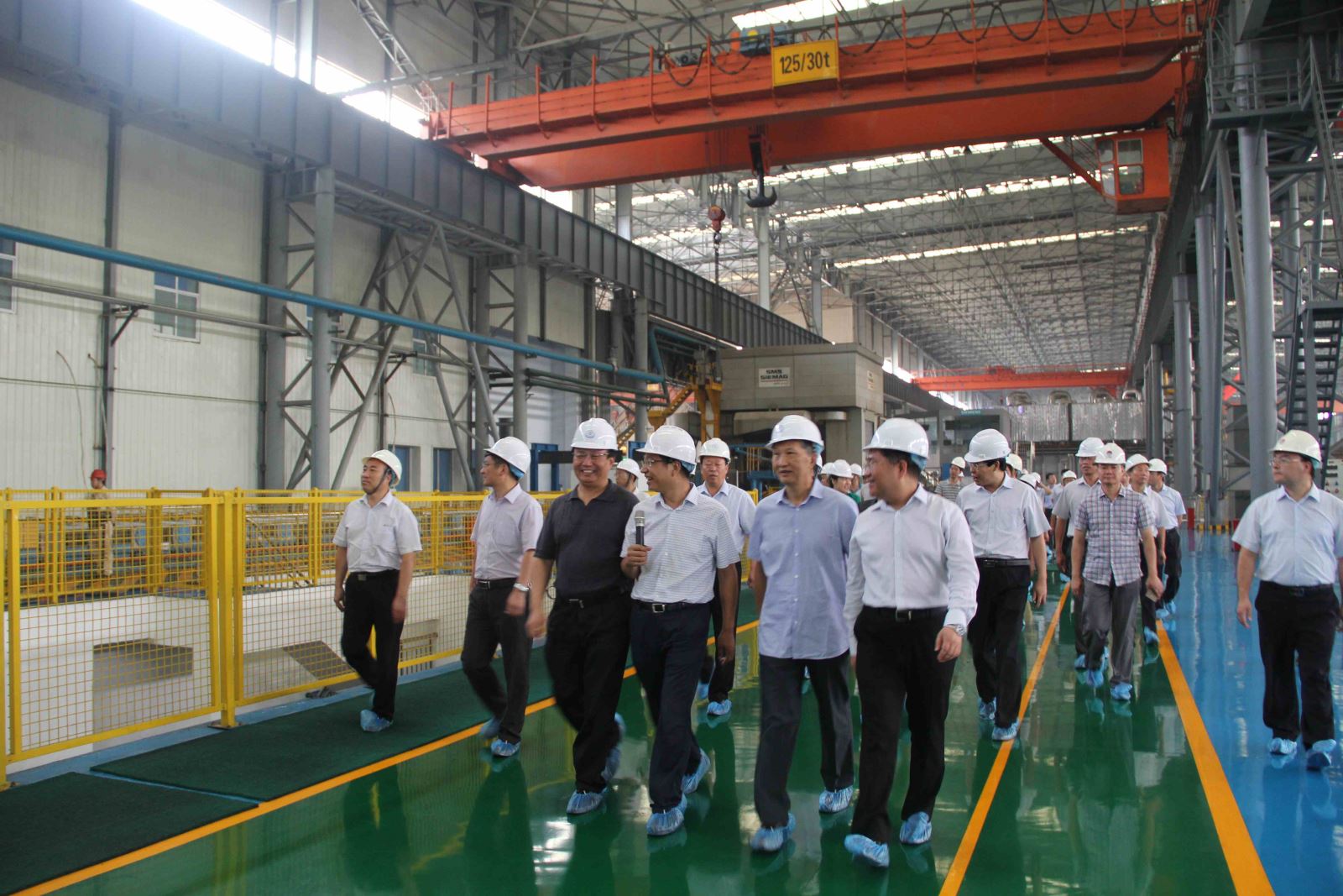 在高精鋁分公司,馬路平書記首先向考察調(diào)研的有關(guān)領(lǐng)導(dǎo)簡要介紹了集團(tuán)公司概況;隨后,高精鋁公司負(fù)責(zé)人簡要介紹了生產(chǎn)工藝流程和生產(chǎn)經(jīng)營情況。調(diào)研組領(lǐng)導(dǎo)興致勃勃地參觀了高精鋁镕鑄、熱軋、冷軋生產(chǎn)工序,對集團(tuán)公司轉(zhuǎn)型升級項目建設(shè)給予了高度評價,希望集團(tuán)公司按照既定目標(biāo),全力以赴,加快項目建設(shè)步伐,確保如期建成投產(chǎn),為地方經(jīng)濟(jì)發(fā)展做出新的貢獻(xiàn)。